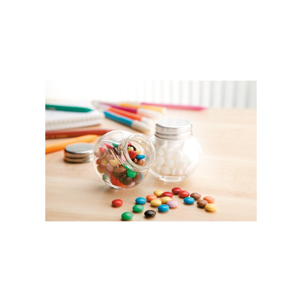Czekoladowe drażetki w słoiczku. Zawartość: 30 gr.