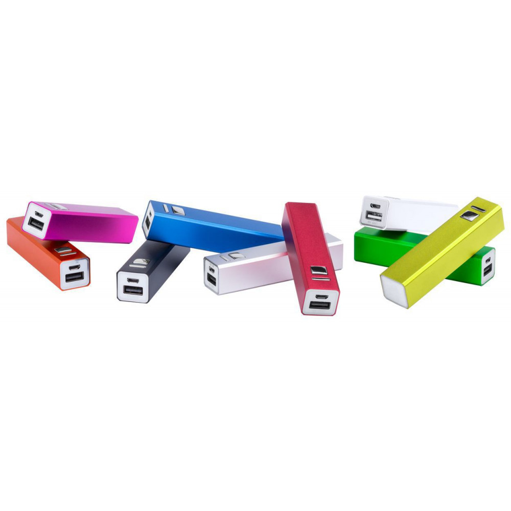Aluminiowy power bank o poj. 2200mAh. Zestaw zawiera kabel microUSB.
