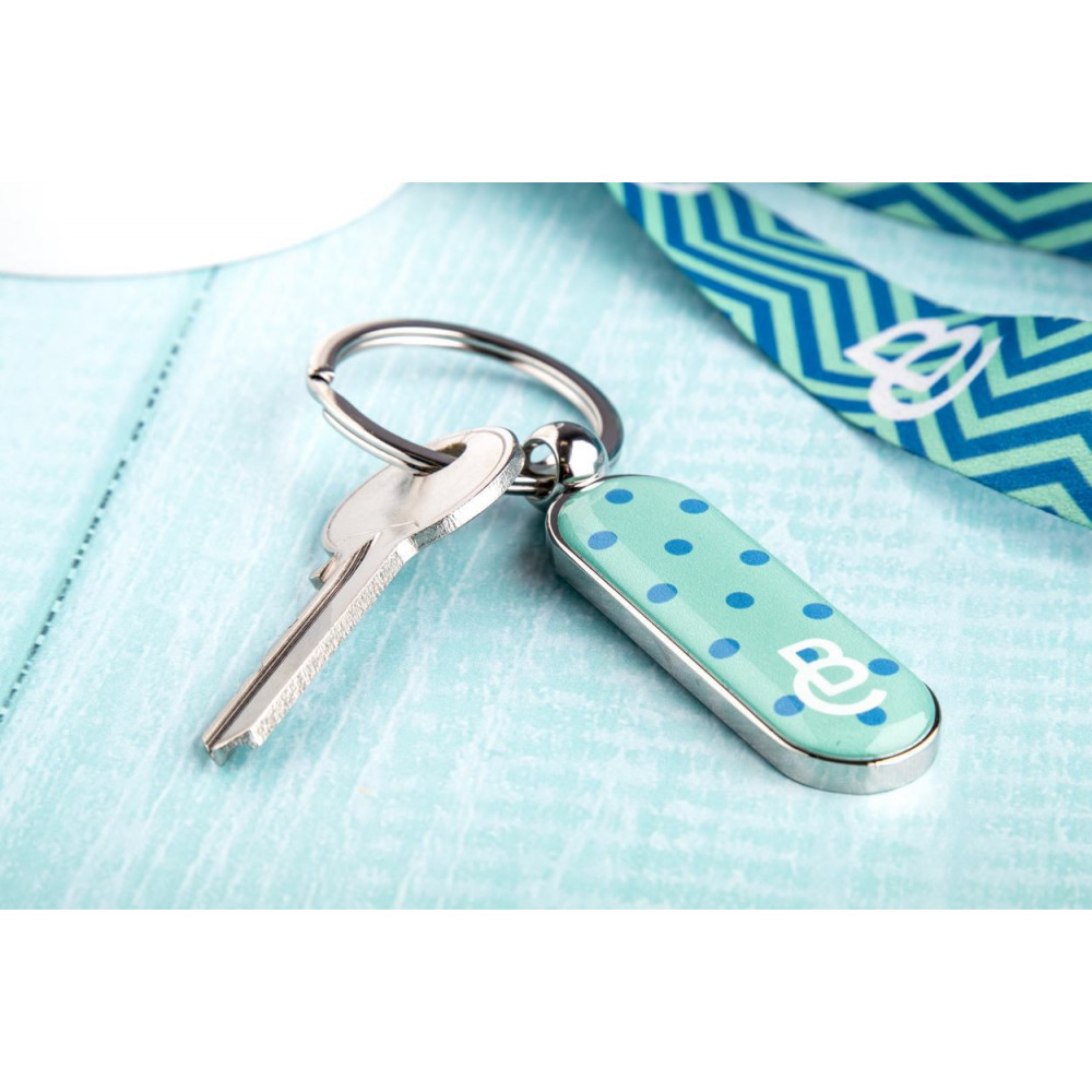 Metalowy brelok w czarnym opakowaniu prezentowym.