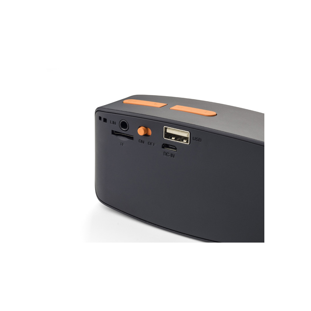 Praktyczne akcesoria są niezbędnym wsparciem dla naszych smartfonów.Głośnik TRAP pozwala na bezprzewodowe słuchanie muzyki gdziekolwiek jesteś ! Duża moc głośnika zapewnia doskonałą jakość dźwięku, a mnogość funkcji czyni ten gadżet wyjątkowo praktycznym. Oprócz bezprzewodowego odtwarzania muzyki, głośnik obsługuje karty micro SD, połączenie kablem AUX, posiada wbudowany tuner FM. Głośnik można także wykorzystać jako zestaw głośnomówiący. Produkt jest zgodny z odpowiednimi dyrektywami Unii Europejskiej oraz posiada znak CE. Dane techniczne: - moc wyjściowa głośnika: 5 W - zasięg: do 10 metrów- wejście: 5 V - pojemność baterii: 400 mAh - czas pracy przy połowie głośności ok. 3 godz.