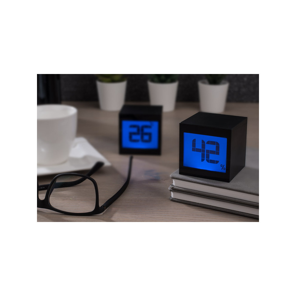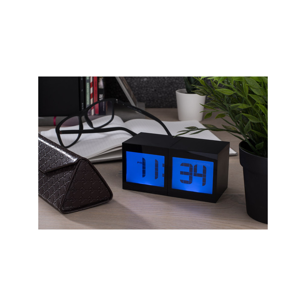 Zegar na biurko MAGIC to dwie oddzielne kostki, które po zetknięciu ze sobą pokazują aktualny czas, a po rozłączeniu - wilgotność powietrza i temperaturę. Oba wyświetlacze podświetlane są na niebiesko. Stanowi on genialny prezent dla gadżeciarzy. Zegar posiada funkcję budzika, kalendarza i czasomierza.