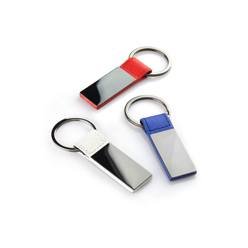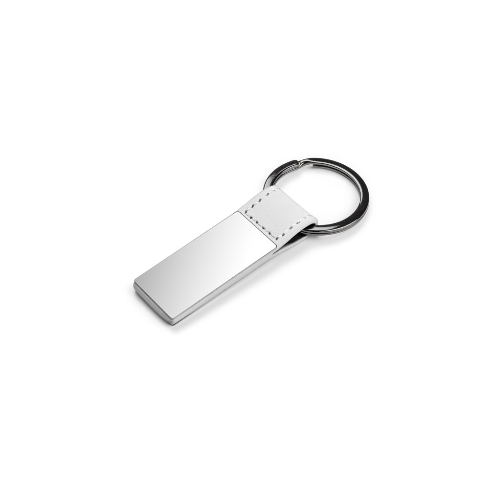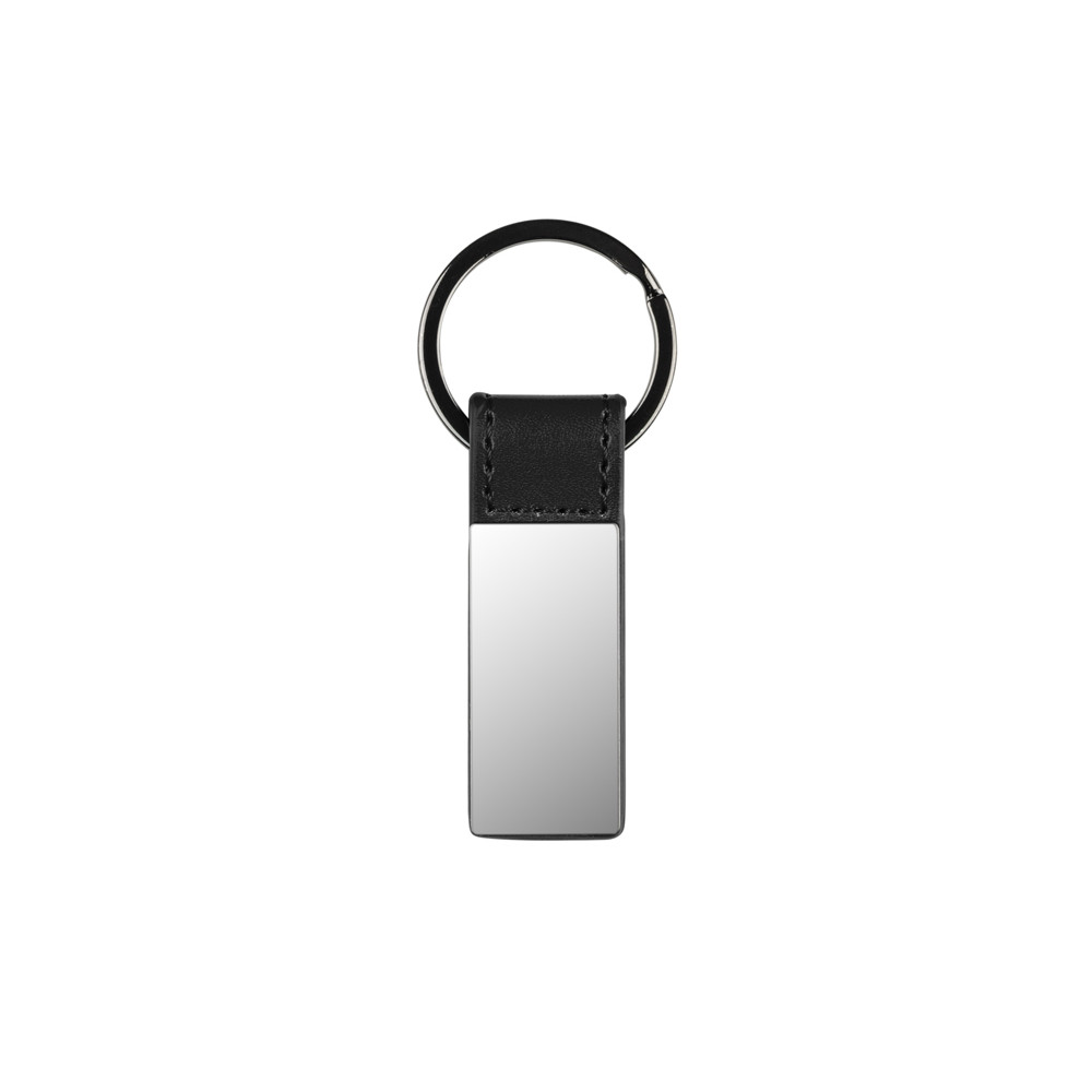Elegancki dwustronny brelok wykonany z ekoskórki PU i metalu w kolorze grafitowym. Logo wygrawerujemy na metalowej blaszce.