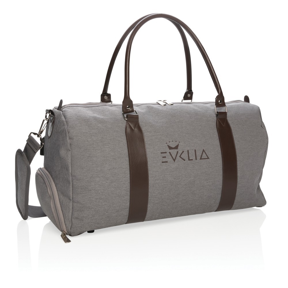 Nowoczesna i minimalistyczna torba sportowa, weekendowa wykonana z poliestru 600D. Posiada uchwyt z PU, łatwo dostępną kieszeń i wygodny pasek na ramię. Główna przegroda jest niezwykle pojemna, pomieści wszystkie niezbędne akcesoria weekendowe lub sprzęt sportowy. Co więcej, można podłączyć power-bank do zintegrowanego portu USB i naładować telefon lub tablet w czasie podróży. Nie zawiera PVC.