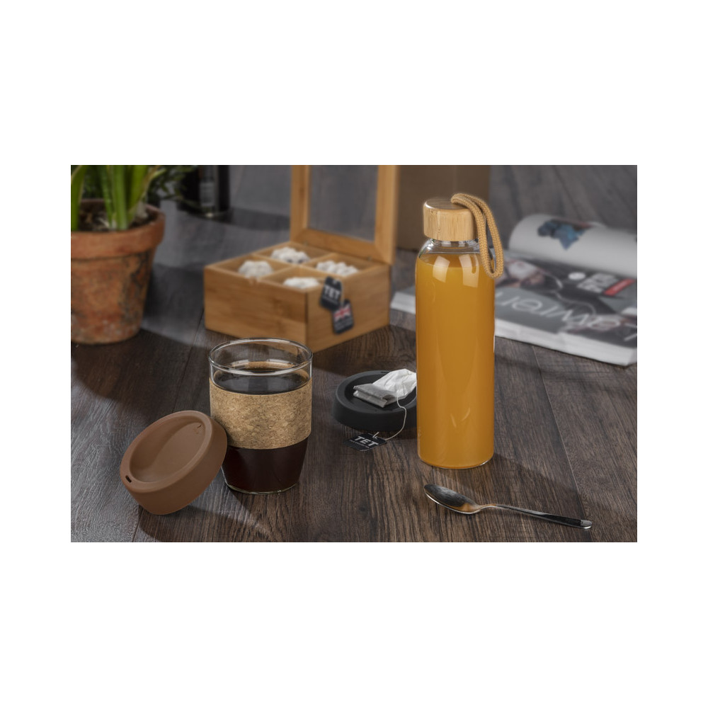 Butelka VIDO o pojemności 560 ml to przyjazna środowisku alternatywa dla plastikowych butelek. Wykonana jest ze szkła borokrzemowego, które jest szkłem wysokiej jakości i jest odporne na wysokie temperatury. Nakrętka wykończona jest naturalnym bambusem i znajduje się na niej wygodny sznurek, który funkcjonuje jako uchwyt.