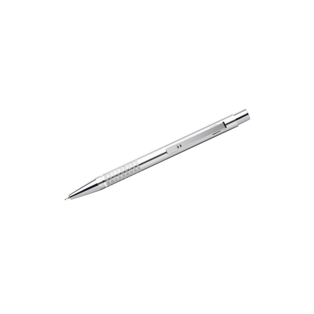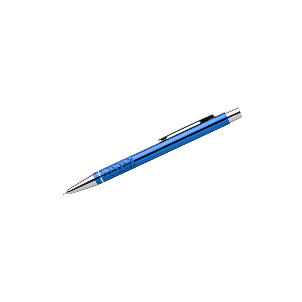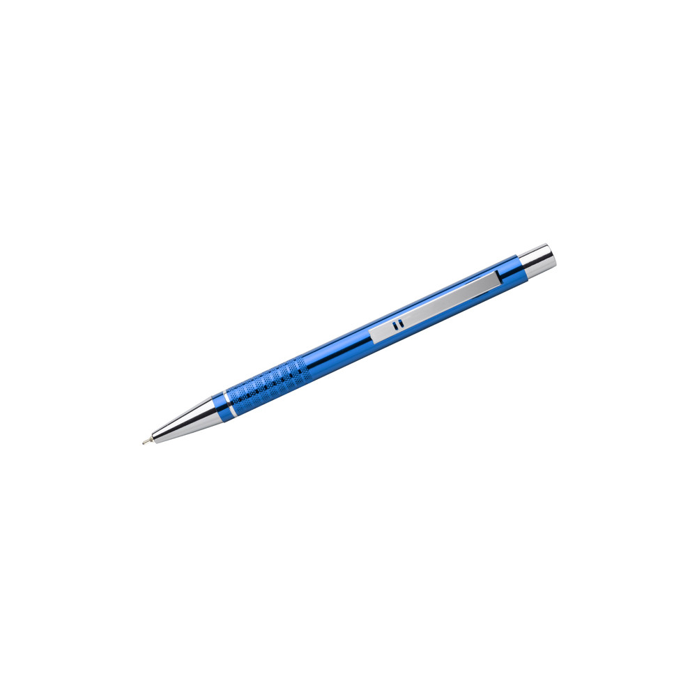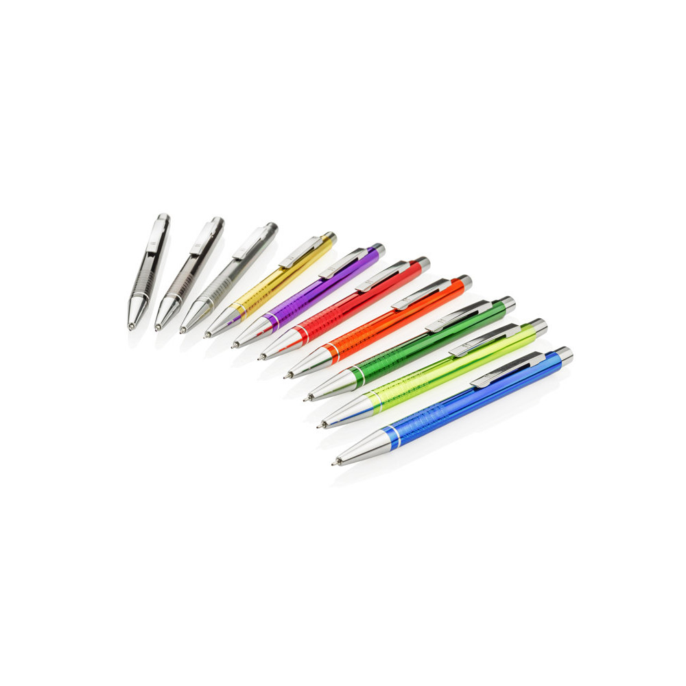 Długopis BONITO to klasyczny elegancki długopis metalowy o metalicznych kolorach z chromowanymi wykończeniami. Wykonany z aluminium. Korpus ozdobiony srebrnym ringiem na dole oraz paskami o delikatnie chropowatej strukturze. Nowy typ wkładu z tuszem półżelowym o grubości pisania 0,7 mm. Wkład w kolorze niebieskim.