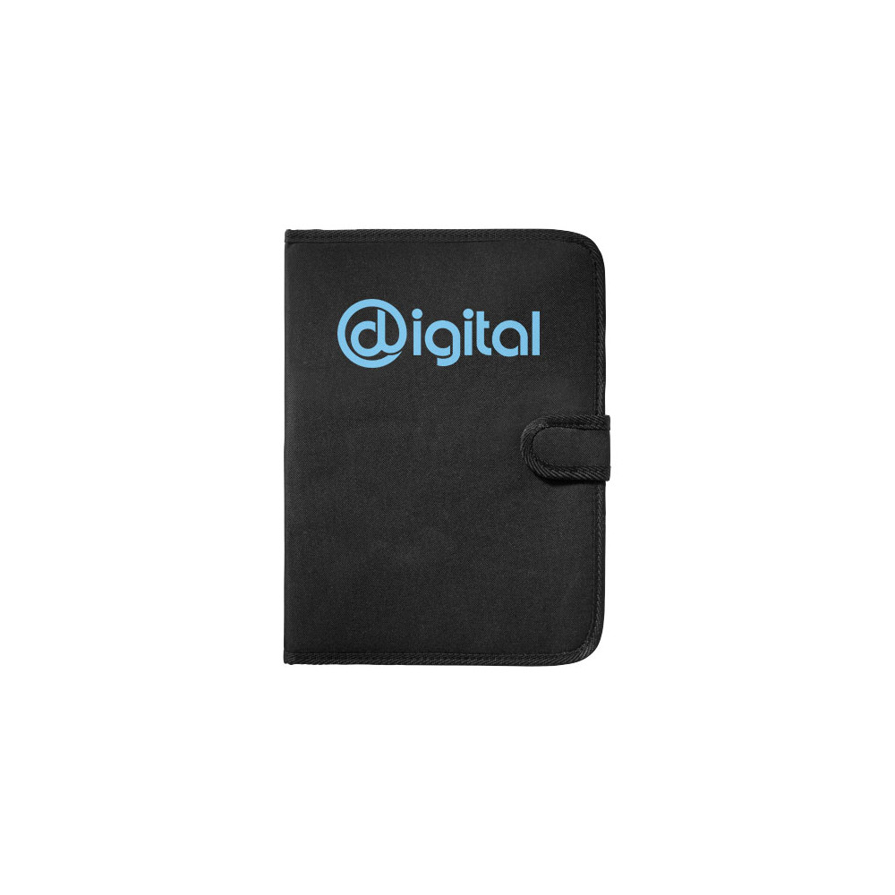 Portfolio zamykane na rzep. Kieszeń na dokumenty, pętelka na długopis oraz notatnik 20 kartek w linie. Nie zawiera długopisu i akcesoriów.