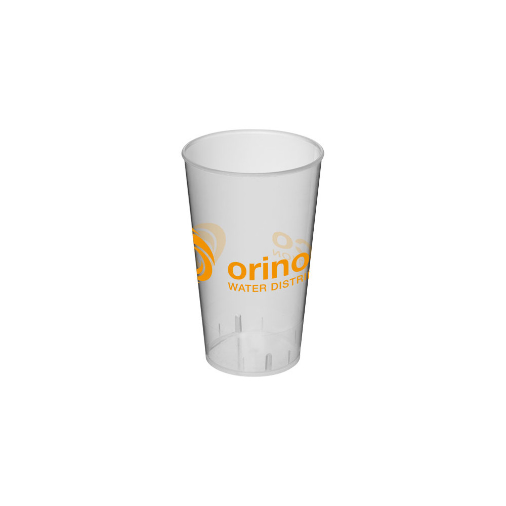 Jednowarstwowy kubek z tworzywa sztucznego. Wybór niedrogich kubków wielokrotnego użytku. Pojemność wynosi 375 ml. Wykonano w Wielkiej Brytanii.