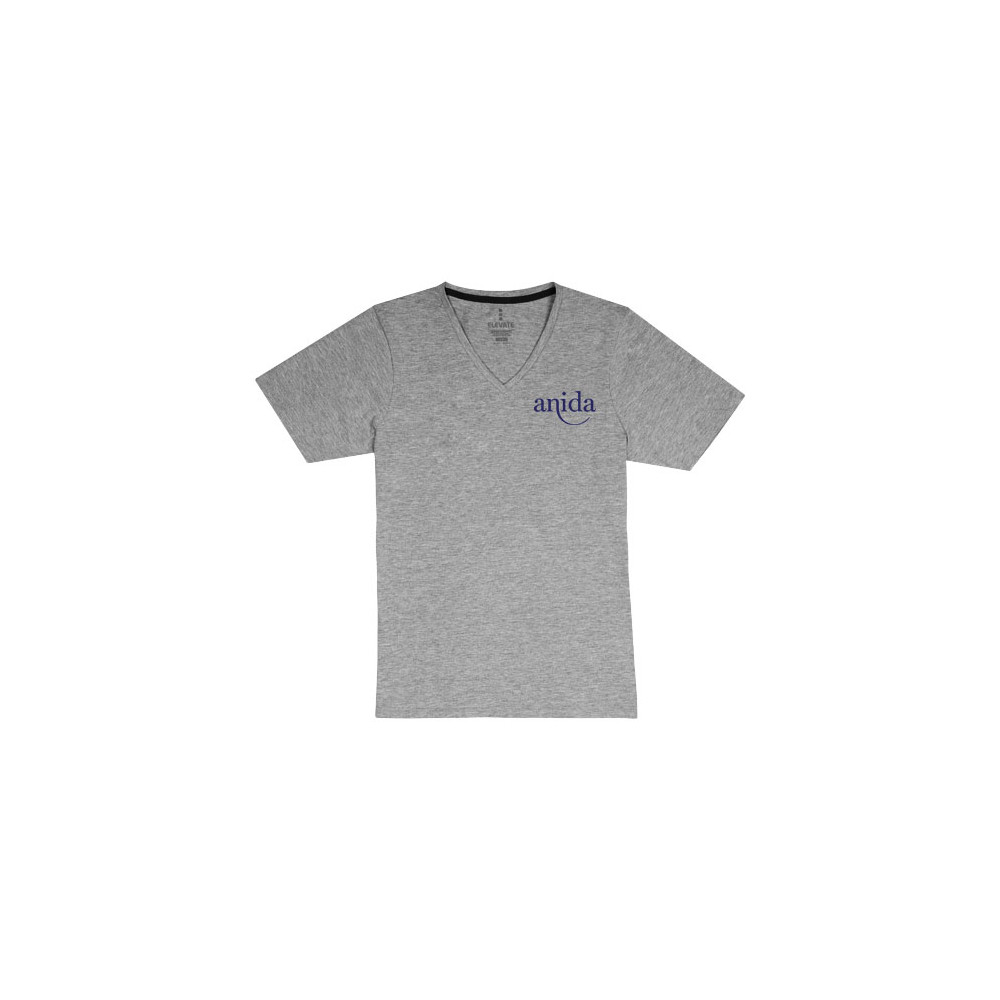 Kołnierzyk z tego samego materiału . V-neck. Elastyczny materiał. Wykończenie ściegiem typu pick. Taśma wzmacniająca od ramienia do ramienia. Metka wdrukowana transferem dla lepszego komfortu.