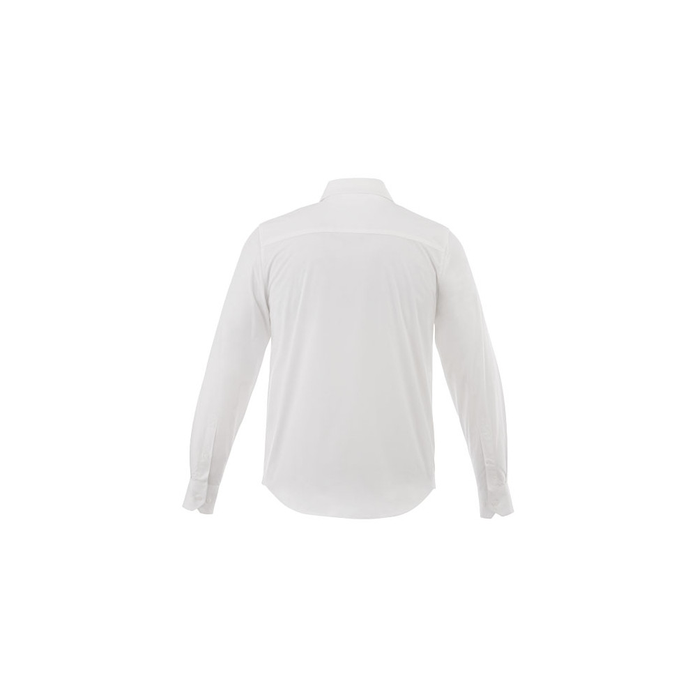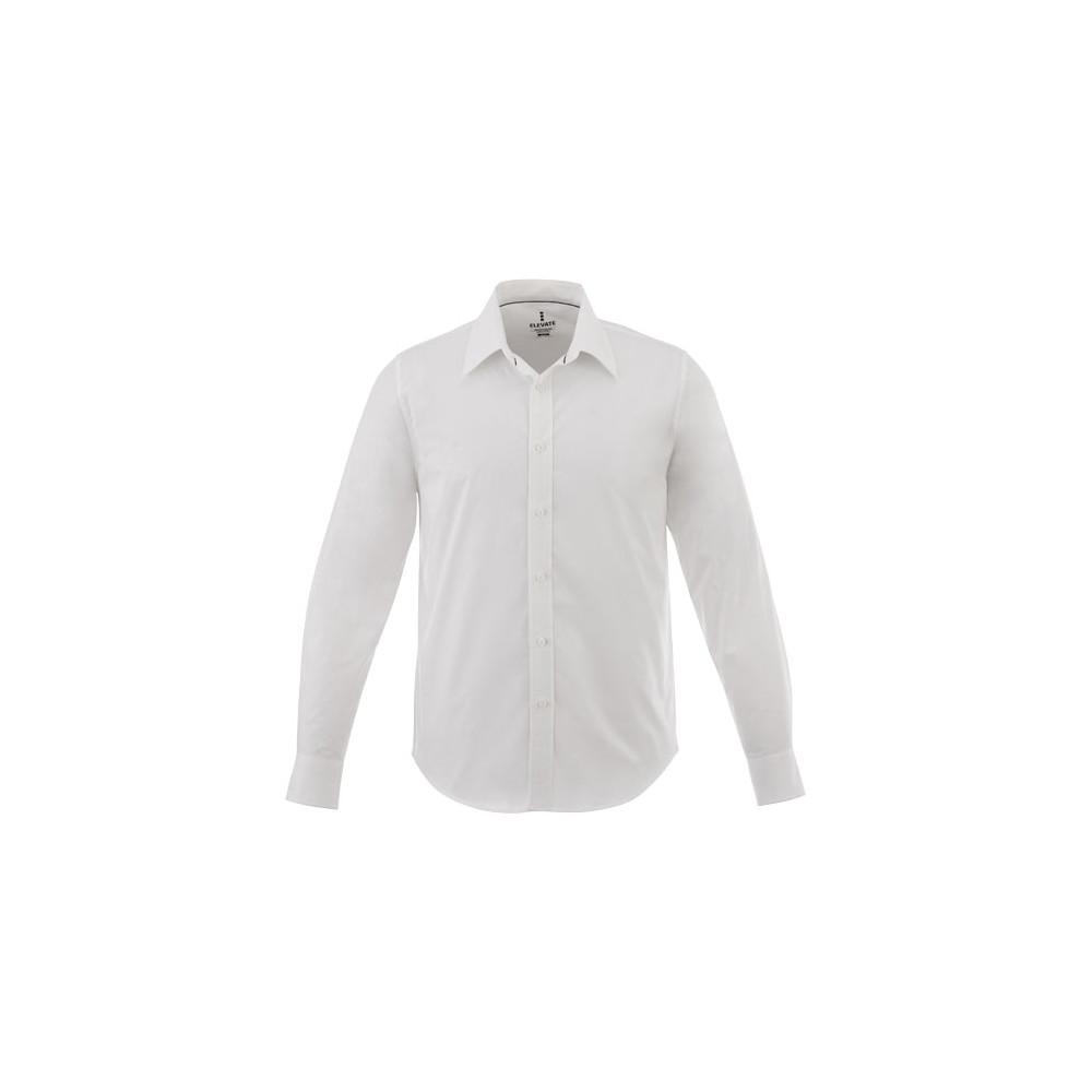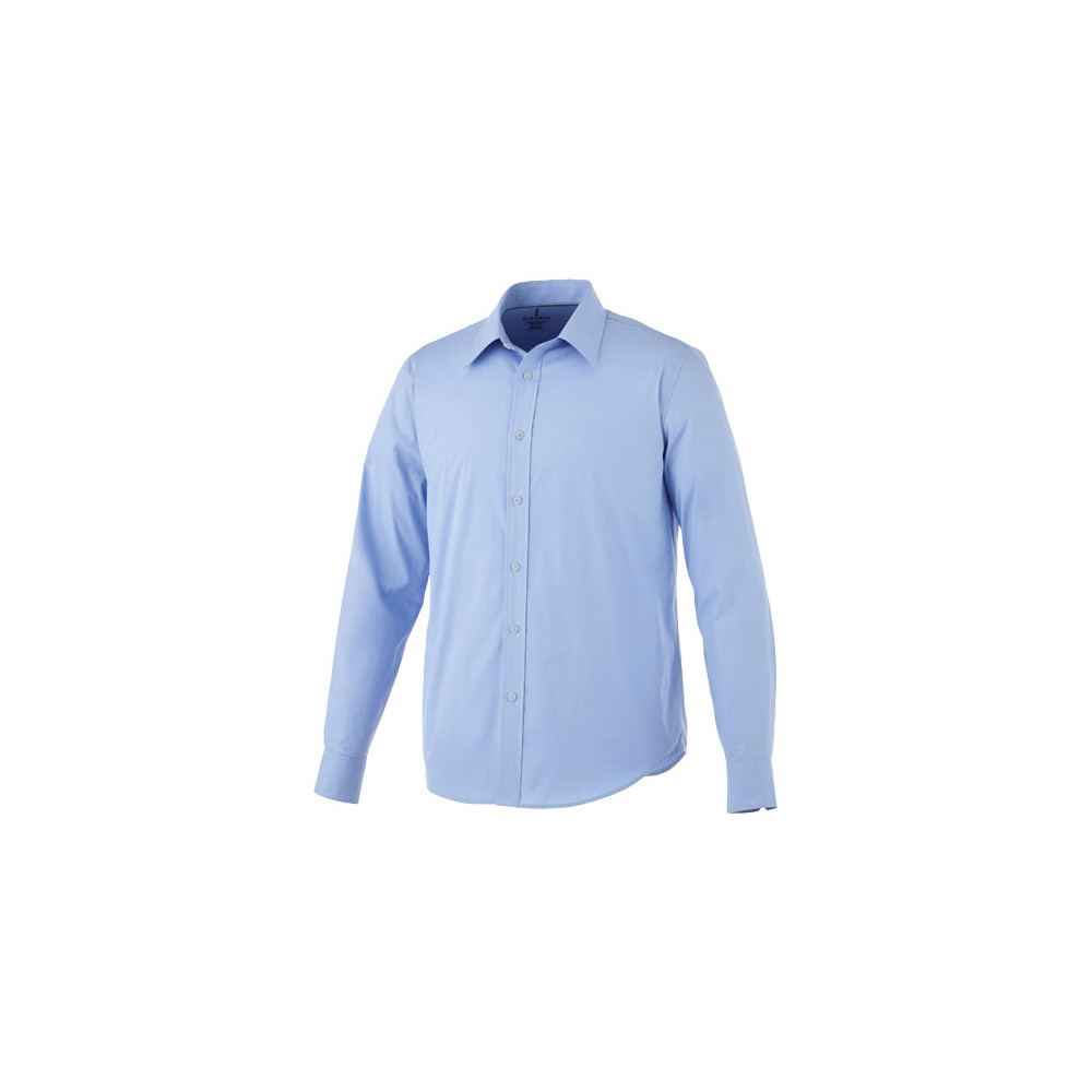 Kołnierzyk button down z ukrytymi guzikami. Elastyczny materiał. Regulowany mankiet z pojedynczą plisą. Satynowa lamówka wewnątrz na karku. Guziki z wygrawerowanym logo w kolorze materiału. Metka wdrukowana transferem dla lepszego komfortu.