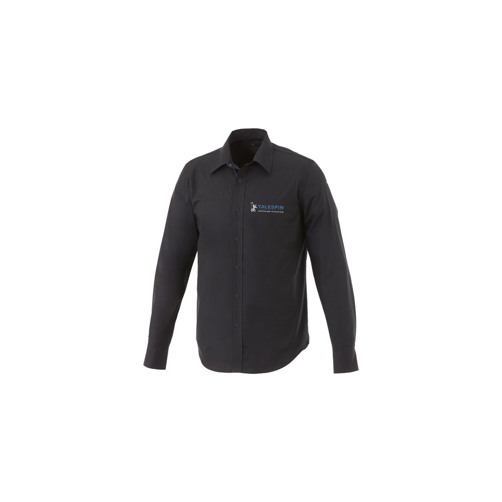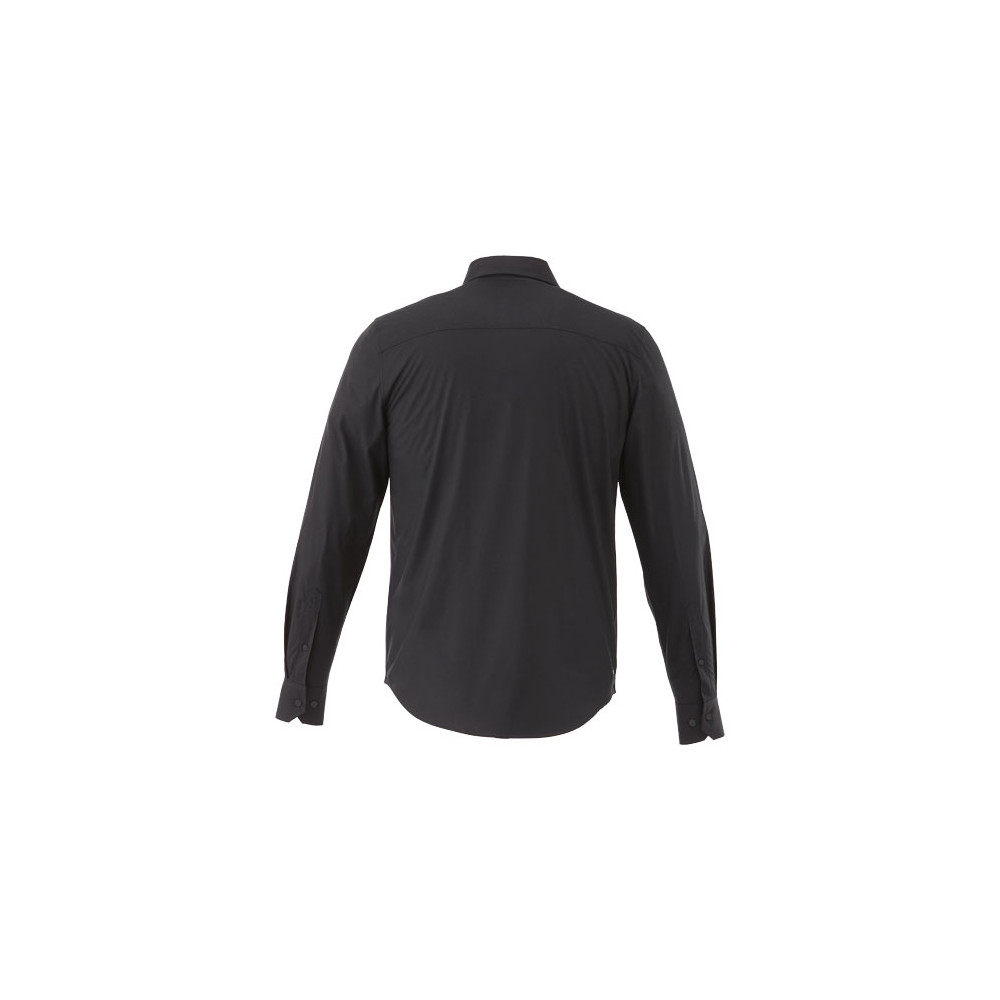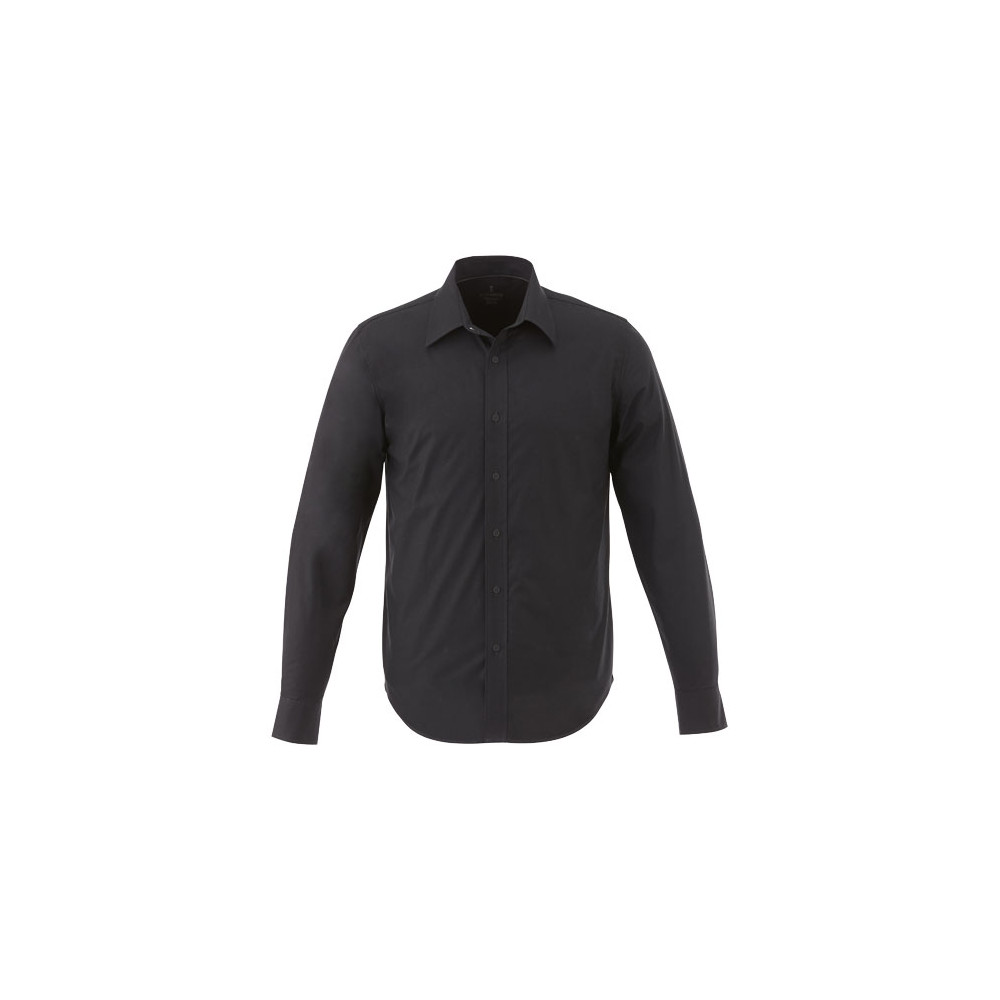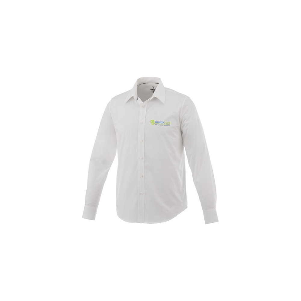 Kołnierzyk button down z ukrytymi guzikami. Elastyczny materiał. Regulowany mankiet z pojedynczą plisą. Satynowa lamówka wewnątrz na karku. Guziki z wygrawerowanym logo w kolorze materiału. Metka wdrukowana transferem dla lepszego komfortu.