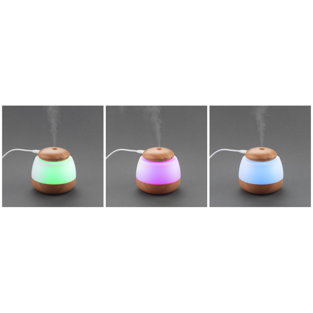 Ultradźwiękowy nawilżacz powietrza AERO to propozycja małego i gustownego prezentu. Dzięki imitacji drewna produkt nabiera elegancji. Jest on wyjątkowo prosty i wygodny w użyciu. Poza podstawową funkcją generowania mgiełki posiada również przyciągające wzrok podświetlenie w siedmiu kolorach. W zestawie znajduje się kabel micro USB do zasilania. AERO nie jest odpowiedni do stosowania olejków zapachowych. Dane techniczne: - Pojemność zbiornika 160 ml - Napięcie wejściowe DC 5V/0.3A - Moc 1,5W - Timer 6h - Częstotliwość ultradźwięków 108 MHz - Ilość mgiełki 20-30 ml/h